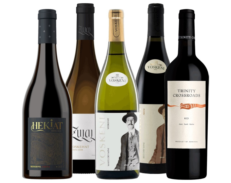 Armenia dysponuje ponad 500 rdzennymi odmianami winorośli. Wśród białych szczepów wyróżnia się voskehat, dający wina o pełnym ciele, aromatach miodu i owoców pestkowych, z czerwonych zaś areni noir – perła armeńskiego winiarstwa, dająca eleganckie, złożone wina o potencjale dojrzewania. To właśnie wina z tych dwóch legendarnych odmian w bardzo odmiennych stylach prezentujemy Państwu w listopadowym zestawie konesera.